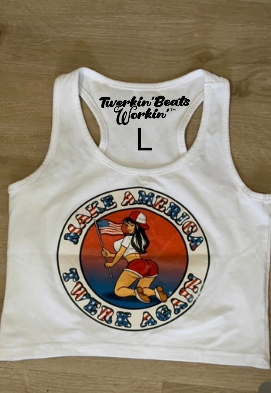 Bold Graphics: "Twerkin’ Beats Workin’" emblazoned to make it clear where your priorities are.